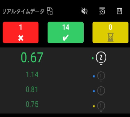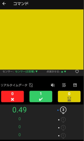 タッチセンサーで指定された色にタッチします。今回は15秒で何回タッチ出来るかのトレーニングです。