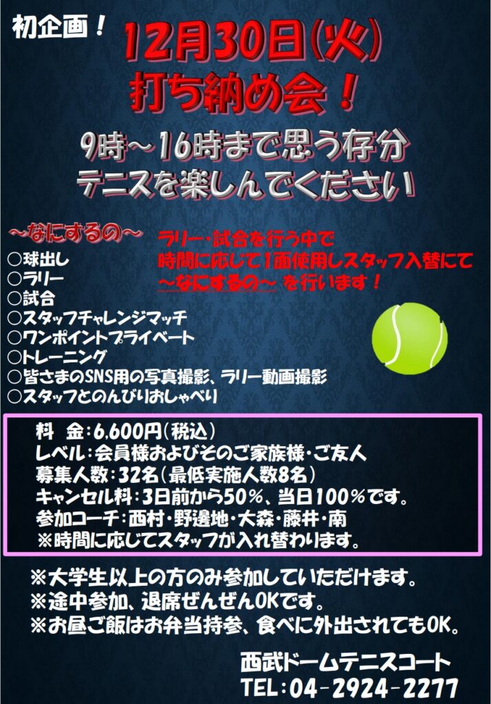 打ち納め会ではコーチ5名が皆様の希望に沿ってレッスン致します。