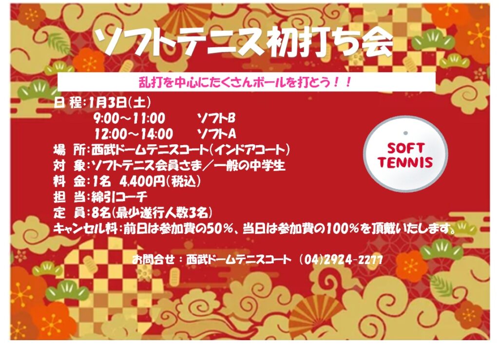 年末年始営業時間のお知らせ 2025 12/17 blog 2025-12-17 こんにちは。西武ドームテニスコートです。 年末年始の営業時間のお知らせになります。営業日も通常レッスンはございません。様々なイベントを開催致します。是非ご参加ください。 blog よかったらシェアしてね! URLをコピーしました! URLをコピーしました! 綿引コーチのブログ 12月20日 シングルストーナメント優勝者 この記事を書いた人 綿引將人 関連記事 綿引コーチのブログ 2026-02-01 1月31日 シングルストーナメント優勝者 2026-01-31 綿引コーチのブログ 2026-01-30 1月24日 シングルストーナメント優勝者 2026-01-24 大森コーチのブログ 2026-01-19 綿引コーチのブログ 2026-01-18 綿引コーチのブログ 2026-01-14 1月12日 シングルストーナメント優勝者 2026-01-12 コメント コメントする コメントをキャンセルコメント ※ 名前 ※ メール ※ サイト 次回のコメントで使用するためブラウザーに自分の名前、メールアドレス、サイトを保存する。