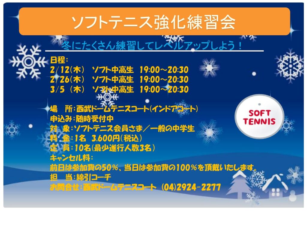 2月3月にソフトテニス練習会を開催致します。