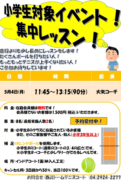 小学生対象、集中レッスン!