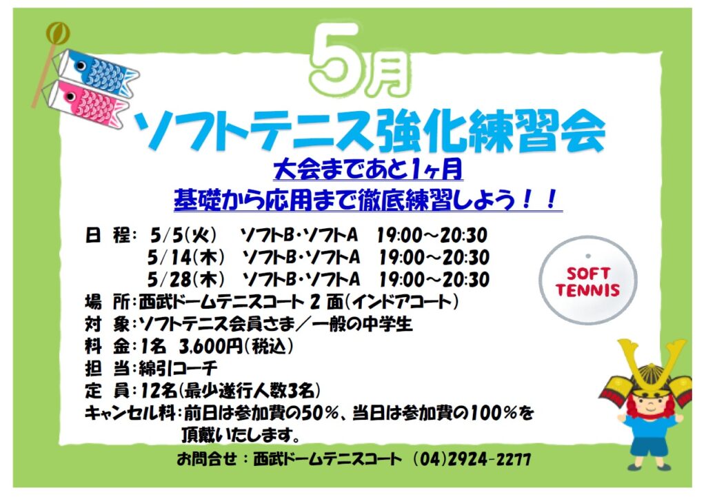5月にソフトテニス強化練習会を開催します。