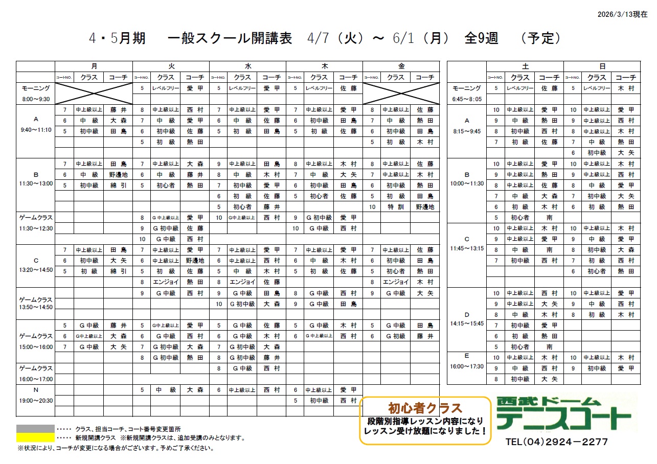 開講表一般スクール4・5月期 2026 4/06 membership 2025-01-142026-04-06 開講表一般スクール4・5月期 開講表4・5月期カレンダー membership よかったらシェアしてね! URLをコピーしました! URLをコピーしました! 野邊地コーチのブログ 開講表ジュニア&ソフトテニス4月・5月期 この記事を書いた人 seibu-rec2 関連記事 代行情報 2025-12-26 開講表ジュニア&ソフトテニス4月・5月期 2025-01-14 コメント コメントする コメントをキャンセルコメント ※ 名前 ※ メール ※ サイト 次回のコメントで使用するためブラウザーに自分の名前、メールアドレス、サイトを保存する。