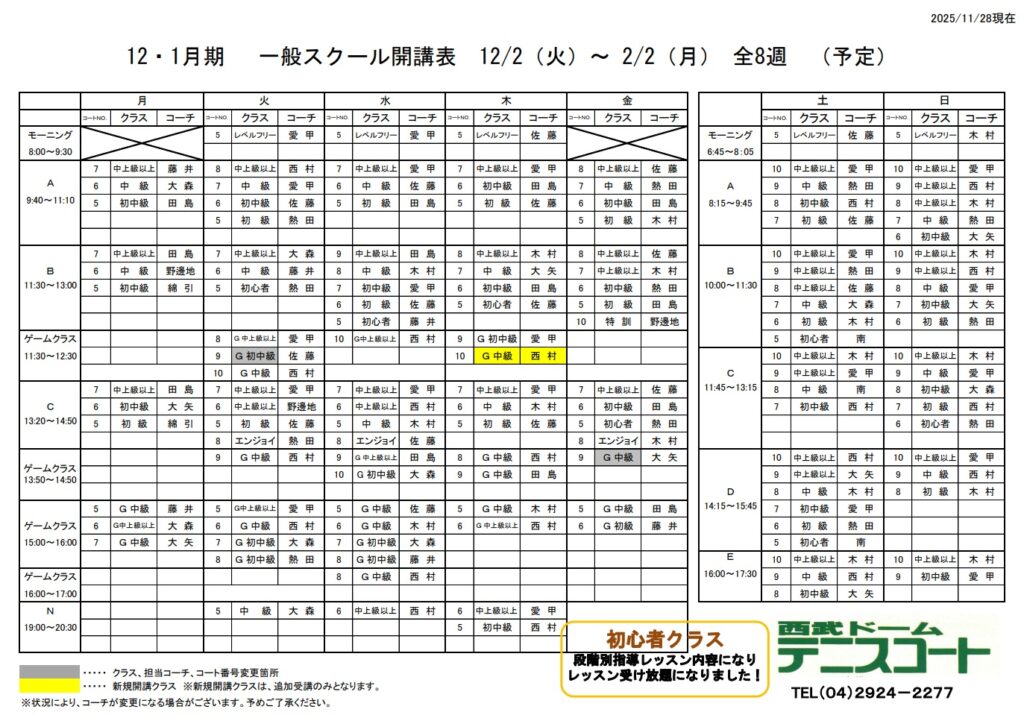 開講表一般スクール12・1月期 2025 11/28 membership 2025-01-142025-11-28 開講表一般スクール12・1月期 開講表12・1月期カレンダー membership よかったらシェアしてね! URLをコピーしました! URLをコピーしました! 野邊地コーチのブログ 開講表ジュニア&ソフトテニス12月・1月期 この記事を書いた人 seibu-rec2 関連記事 開講表ジュニア&ソフトテニス12月・1月期 2025-01-14 コメント コメントする コメントをキャンセルコメント ※ 名前 ※ メール ※ サイト 次回のコメントで使用するためブラウザーに自分の名前、メールアドレス、サイトを保存する。