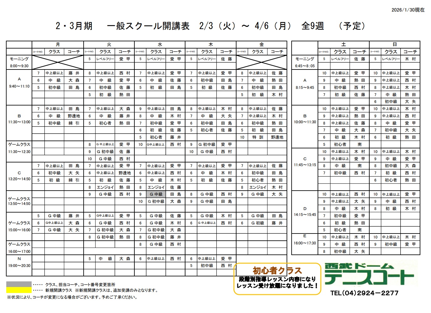 開講表一般スクール2・3月期 2026 2/02 membership 2025-01-142026-02-02 開講表一般スクール2・3月期 開講表2・3月期カレンダー membership よかったらシェアしてね! URLをコピーしました! URLをコピーしました! 野邊地コーチのブログ 開講表ジュニア&ソフトテニス2月・3月期 この記事を書いた人 seibu-rec2 関連記事 代行情報 2025-12-26 開講表ジュニア&ソフトテニス2月・3月期 2025-01-14 コメント コメントする コメントをキャンセルコメント ※ 名前 ※ メール ※ サイト 次回のコメントで使用するためブラウザーに自分の名前、メールアドレス、サイトを保存する。