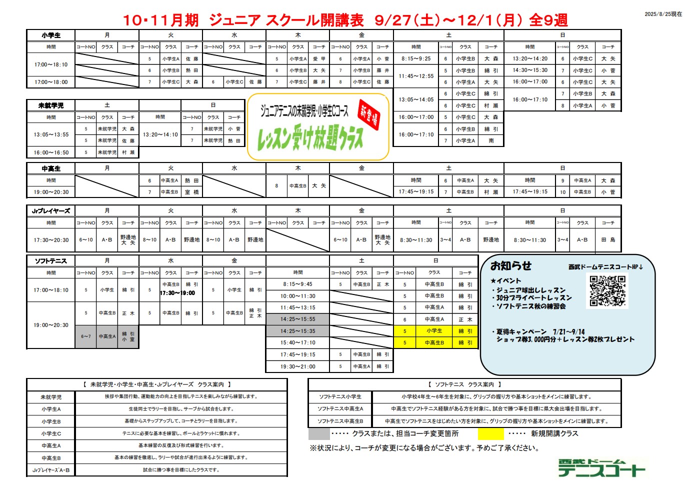 開講表ジュニア&ソフトテニス10月・11月期 2025 9/23 membership 2025-01-142025-09-23 開講表ジュニア&ソフトテニス10月11月期 開講表10月11月期カレンダー membership よかったらシェアしてね! URLをコピーしました! URLをコピーしました! 開講表一般スクール10・11月期 1月11日 シングルストーナメント優勝者 この記事を書いた人 seibu-rec2 関連記事 開講表一般スクール10・11月期 2025-01-14 コメント コメントする コメントをキャンセルコメント ※ 名前 ※ メール ※ サイト 次回のコメントで使用するためブラウザーに自分の名前、メールアドレス、サイトを保存する。
